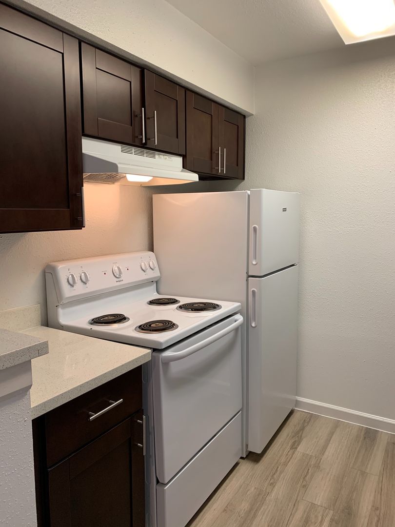 One bedroom, One bath upgraded Apartment Home , with custom cabinets and quartz countertop. This unit is 583 sq feet.