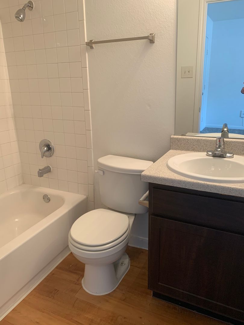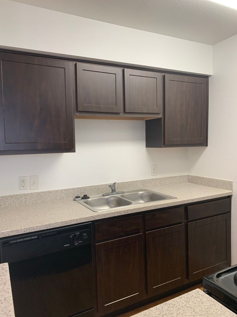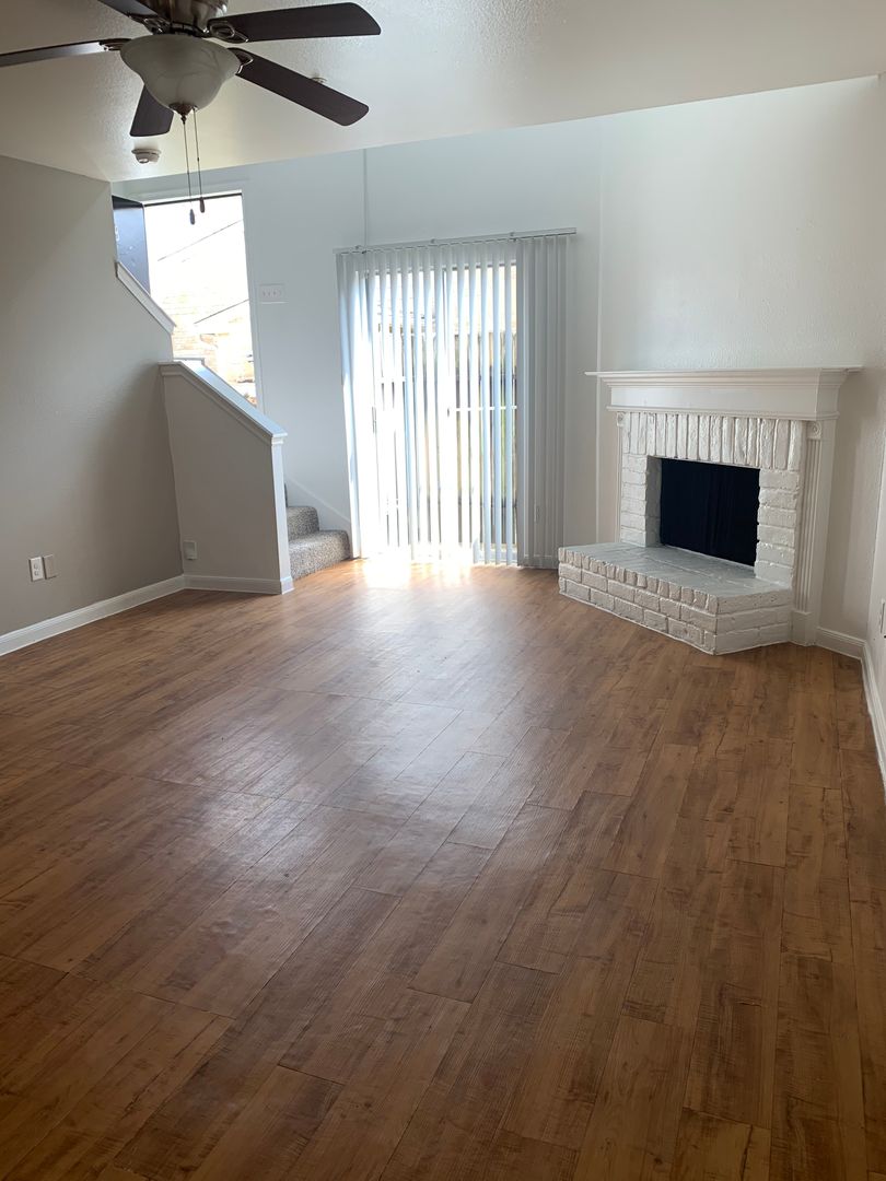 One bedroom, one and a 1/2 bathroom loft-style townhome with full-size washer/dryer connections and fireplace.